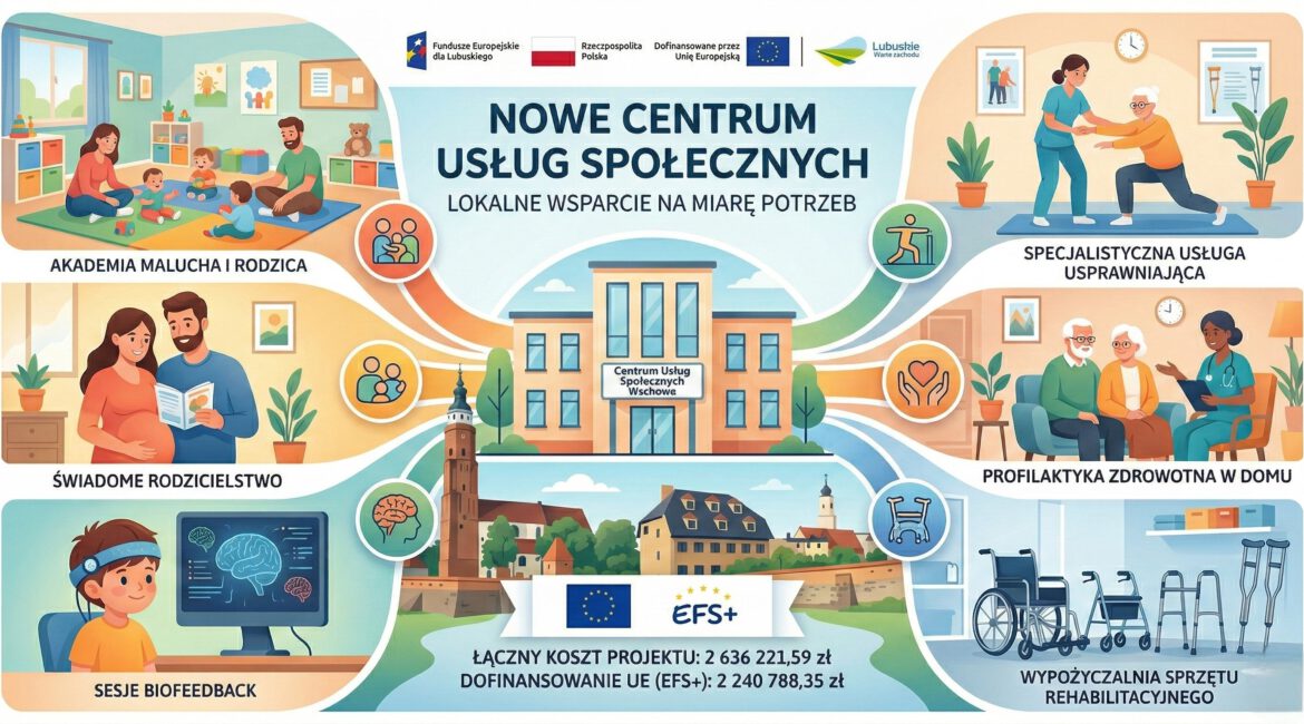 W odpowiedzi na potrzeby mieszkańców Gminy Wschowa, od 1 stycznia 2026 r. realizowany jest projekt „Centrum Usług Społecznych we Wschowie – lokalne wsparcie na miarę potrzeb”.